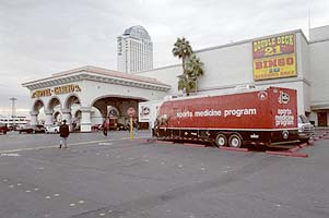 I am sitting in the Training Room of the University of Nevada Las Vegas’s Thomas and Mack Arena, surrounded by some of the finest rodeo cowboys in the world. They, in turn, are surrounded by some of the most skilled Athletic Trainers, Physicians and Therapists in the world: the members of the Justin Sportsmedicine Team. They have all come to participate in what could be termed the “Superbowl” of rodeos, the National Finals Rodeo. For the cowboys, it has taken a year of hard work to get here, but for the sport of rodeo, it has been over one hundred years.