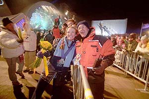 The fire “station” in the Village is actually a large heated tent with a big Velcro “zipper” in the front. Today a drill is scheduled with the truck on aerial operations, and as the crew raises the ladder we become an impromptu media event, with athletes and SLOC volunteers alike stopping to have their pictures taken with the firefighters in front of the rig. We meet Lea Ann Parsley, U.S. Olympic Skeleton Team member who is a volunteer firefighter – and who was 1999 Ohio Firefighter of the Year - in Granville, Ohio, and Peter Kondrat, Czech Republic 4-Man Bobsled Team member who is a career firefighter, and we share the chance to exchange firefighting experiences from a land far from ours. A while later we all retire to the “dorm”: since there are no living accommodations in the tent, the firefighters were invited to take rooms in the same dormitory as the Russian athletes. As the sun goes down, we all gather around the TV, trade gossip and insults and feast on free McDonalds…no different than any other firehouse anywhere in the world…except that today the world is here, with us.